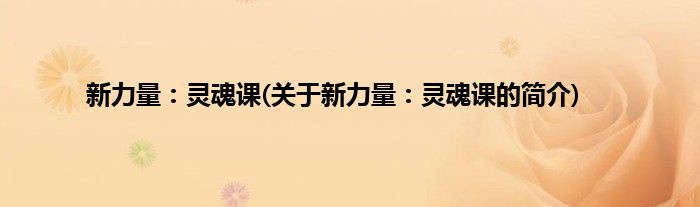 本文关于新力量:灵魂课的简介就讲解完毕,希望对大家有所帮助。