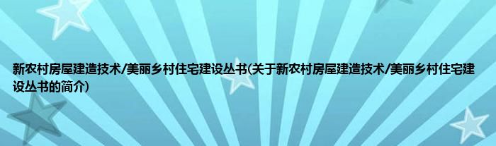 本文关于新农村房屋建造技术/美丽乡村住宅建设丛书的简介就讲解完毕,希望对大家有所帮助。