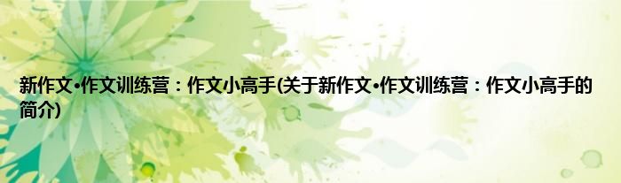 大家好,新作文·作文训练营:作文小高手,关于新作文·作文训练营:作文小高手的简介很多人还不知道,现在让我们一起来看看吧!