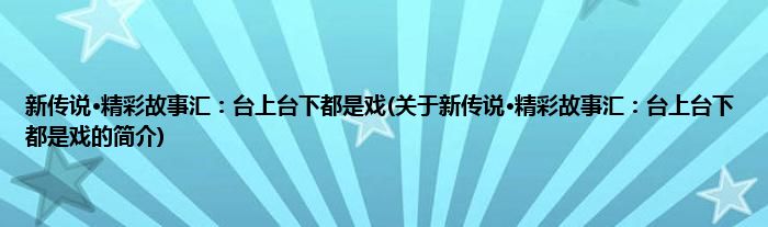本文关于新传说·精彩故事汇:台上台下都是戏的简介就讲解完毕,希望对大家有所帮助。