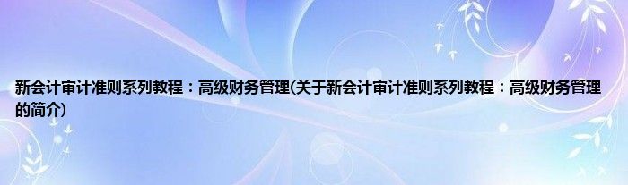 大家好,新会计审计准则系列教程:高级财务管理,关于新会计审计准则系列教程:高级财务管理的简介很多人还不知道,现在让我们一起来看看吧!