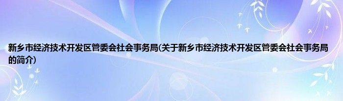 大家好,新乡市经济技术开发区管委会社会事务局,关于新乡市经济技术开发区管委会社会事务局的简介很多人还不知道,现在让我们一起来看看吧!
