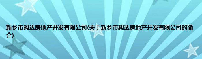 大家好,新乡市昶达房地产开发有限公司,关于新乡市昶达房地产开发有限公司的简介很多人还不知道,现在让我们一起来看看吧!