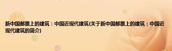 1、 《新中国邮票上的建筑中国近现代建筑》是2015年清华大学出版社出版的图书。