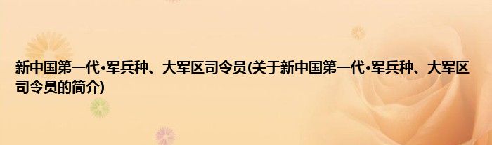 大家好,新中国第一代·军兵种、大军区司令员,关于新中国第一代·军兵种、大军区司令员的简介很多人还不知道,现在让我们一起来看看吧!