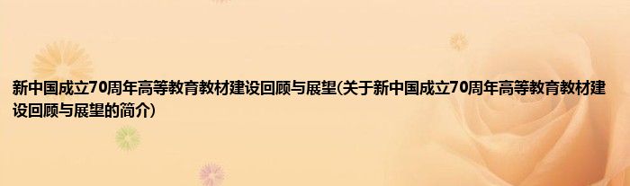 大家好,新中国成立70周年高等教育教材建设回顾与展望,关于新中国成立70周年高等教育教材建设回顾与展望的简介很多人还不知道,现在让我们一起来看看吧!