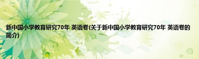 本文关于新中国小学教育研究70年 英语卷的简介就讲解完毕,希望对大家有所帮助。