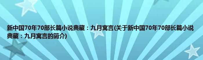 本文关于新中国70年70部长篇小说典藏:九月寓言的简介就讲解完毕,希望对大家有所帮助。