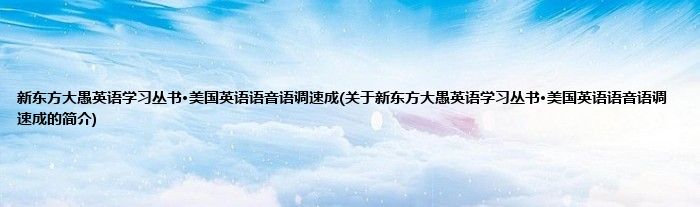 本文关于新东方大愚英语学习丛书·美国英语语音语调速成的简介就讲解完毕,希望对大家有所帮助。