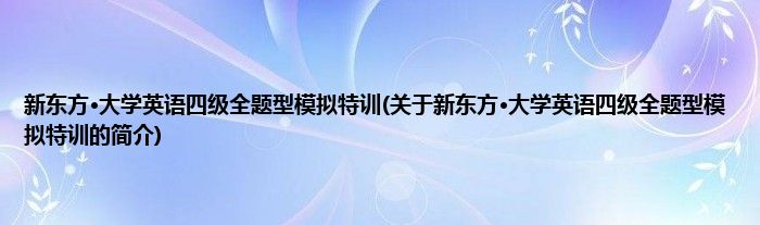 本文关于新东方·大学英语四级全题型模拟特训的简介就讲解完毕,希望对大家有所帮助。