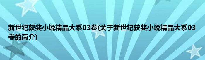 大家好,新世纪获奖小说精品大系03卷,关于新世纪获奖小说精品大系03卷的简介很多人还不知道,现在让我们一起来看看吧!