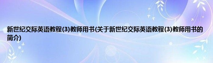 本文关于新世纪交际英语教程(3)教师用书的简介就讲解完毕,希望对大家有所帮助。