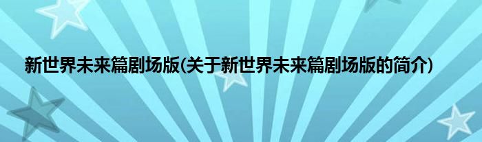 本文关于新世界未来篇剧场版的简介就讲解完毕,希望对大家有所帮助。