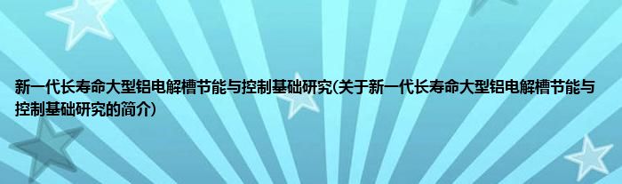 新一代长寿命大型铝电解槽节能与控制基础研究(关于新一代长寿命大型铝电解槽节能与控制基础研究的简介)