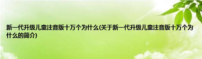 本文关于新一代升级儿童注音版十万个为什么的简介就讲解完毕,希望对大家有所帮助。