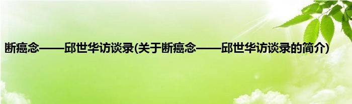 本文关于断癌念——邱世华访谈录的简介就讲解完毕,希望对大家有所帮助。