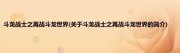 本文关于斗龙战士之再战斗龙世界的简介就讲解完毕,希望对大家有所帮助。