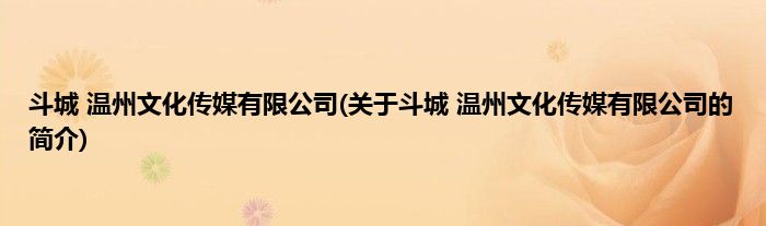 本文关于斗城 温州文化传媒有限公司的简介就讲解完毕,希望对大家有所帮助。