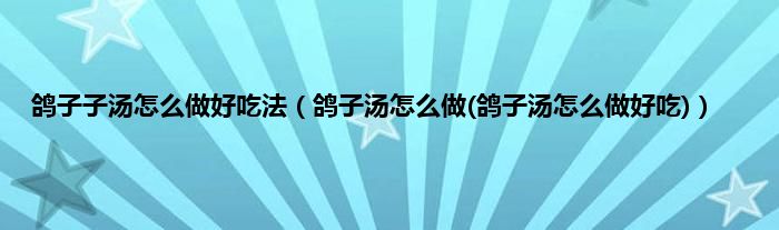 大家好,小科来为大家解答以上问题。鸽子子汤怎么做好吃法,鸽子汤怎么做(鸽子汤怎么做好吃)很多人还不知道,现在让我们一起来看看吧!