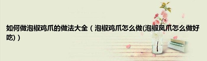 大家好,小科来为大家解答以上问题。如何做泡椒鸡爪的做法大全,泡椒鸡爪怎么做(泡椒凤爪怎么做好吃)很多人还不知道,现在让我们一起来看看吧!