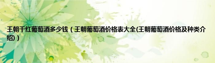 大家好,小科来为大家解答以上问题。王朝干红葡萄酒多少钱,王朝葡萄酒价格表大全(王朝葡萄酒价格及种类介绍)很多人还不知道,现在让我们一起来看看吧!