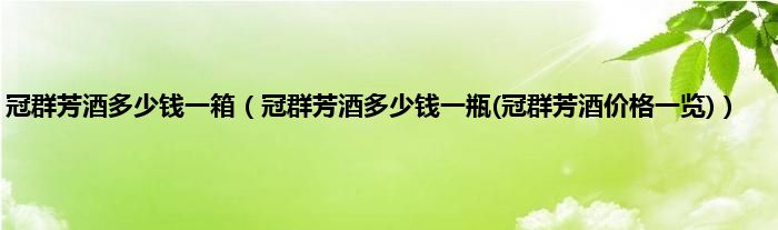 大家好,小科来为大家解答以上问题。冠群芳酒多少钱一箱,冠群芳酒多少钱一瓶(冠群芳酒价格一览)很多人还不知道,现在让我们一起来看看吧!