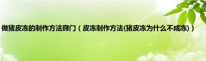 大家好,小科来为大家解答以上问题。做猪皮冻的制作方法窍门,皮冻制作方法(猪皮冻为什么不成冻)很多人还不知道,现在让我们一起来看看吧!