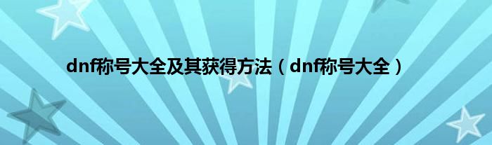 大家好,精选小编来为大家解答以上问题。dnf称号大全及其获得方法,dnf称号大全很多人还不知道,现在让我们一起来看看吧!