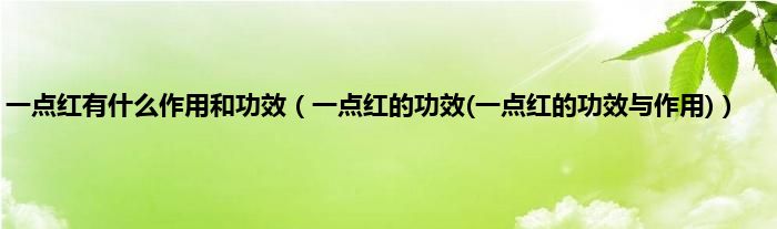大家好,小科来为大家解答以上问题。一点红有什么作用和功效,一点红的功效(一点红的功效与作用)很多人还不知道,现在让我们一起来看看吧!