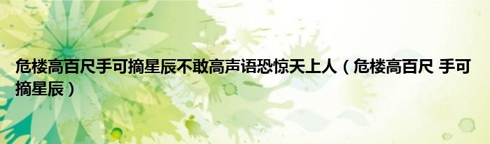 大家好,精选小编来为大家解答以上问题。危楼高百尺手可摘星辰不敢高声语恐惊天上人,危楼高百尺 手可摘星辰很多人还不知道,现在让我们一起来看看吧!