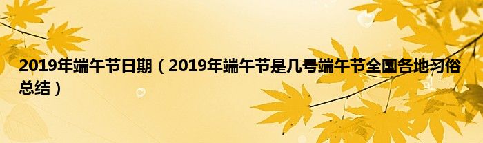 大家好,小科来为大家解答以上问题。2019年端午节日期,2019年端午节是几号端午节全国各地习俗总结很多人还不知道,现在让我们一起来看看吧!