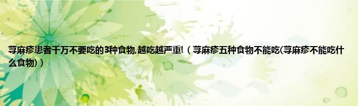 大家好,小科来为大家解答以上问题。荨麻疹患者千万不要吃的3种食物,越吃越严重!,荨麻疹五种食物不能吃(荨麻疹不能吃什么食物)很多人还不知道,现在让我们一起来看看吧!