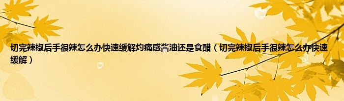 大家好,精选小编来为大家解答以上问题。切完辣椒后手很辣怎么办快速缓解灼痛感酱油还是食醋,切完辣椒后手很辣怎么办快速缓解很多人还不知道,现在让我们一起来看看吧!