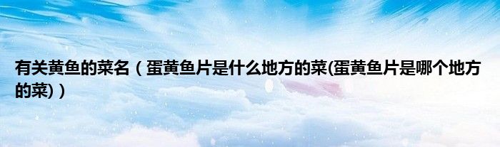大家好,小科来为大家解答以上问题。有关黄鱼的菜名,蛋黄鱼片是什么地方的菜(蛋黄鱼片是哪个地方的菜)很多人还不知道,现在让我们一起来看看吧!