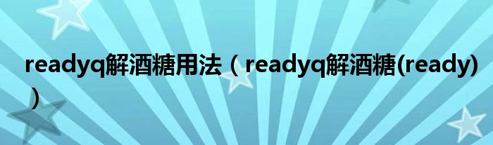 大家好,小科来为大家解答以上问题。readyq解酒糖用法,readyq解酒糖(ready)很多人还不知道,现在让我们一起来看看吧!