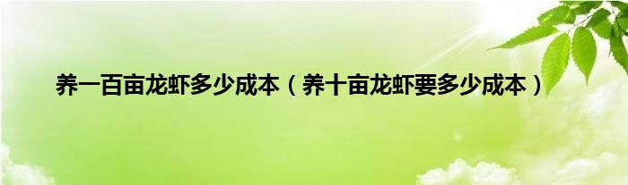 大家好,小科来为大家解答以上问题。养一百亩龙虾多少成本,养十亩龙虾要多少成本很多人还不知道,现在让我们一起来看看吧!