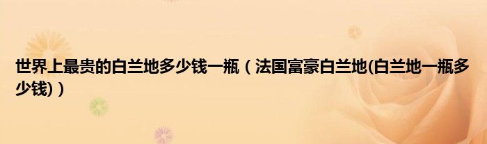 大家好,小科来为大家解答以上问题。世界上最贵的白兰地多少钱一瓶,法国富豪白兰地(白兰地一瓶多少钱)很多人还不知道,现在让我们一起来看看吧!