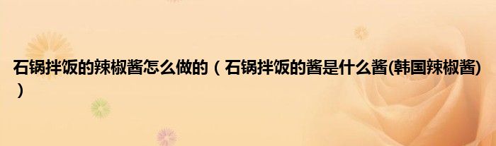 大家好,小科来为大家解答以上问题。石锅拌饭的辣椒酱怎么做的,石锅拌饭的酱是什么酱(韩国辣椒酱)很多人还不知道,现在让我们一起来看看吧!