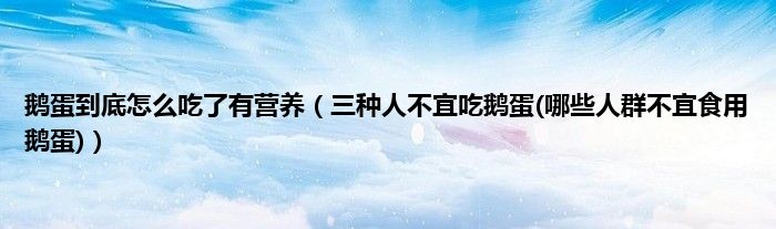 大家好,小科来为大家解答以上问题。鹅蛋到底怎么吃了有营养,三种人不宜吃鹅蛋(哪些人群不宜食用鹅蛋)很多人还不知道,现在让我们一起来看看吧!