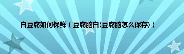 大家好,小科来为大家解答以上问题。白豆腐如何保鲜,豆腐脑白(豆腐脑怎么保存)很多人还不知道,现在让我们一起来看看吧!