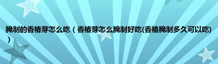大家好,小科来为大家解答以上问题。腌制的香椿芽怎么吃,香椿芽怎么腌制好吃(香椿腌制多久可以吃)很多人还不知道,现在让我们一起来看看吧!