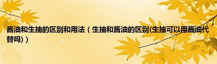 大家好,小科来为大家解答以上问题。酱油和生抽的区别和用法,生抽和酱油的区别(生抽可以用酱油代替吗)很多人还不知道,现在让我们一起来看看吧!