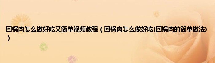大家好,小科来为大家解答以上问题。回锅肉怎么做好吃又简单视频教程,回锅肉怎么做好吃(回锅肉的简单做法)很多人还不知道,现在让我们一起来看看吧!