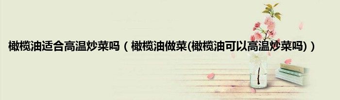 大家好,小科来为大家解答以上问题。橄榄油适合高温炒菜吗,橄榄油做菜(橄榄油可以高温炒菜吗)很多人还不知道,现在让我们一起来看看吧!