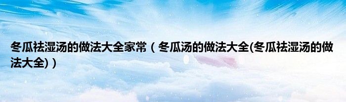 大家好,小科来为大家解答以上问题。冬瓜祛湿汤的做法大全家常,冬瓜汤的做法大全(冬瓜祛湿汤的做法大全)很多人还不知道,现在让我们一起来看看吧!