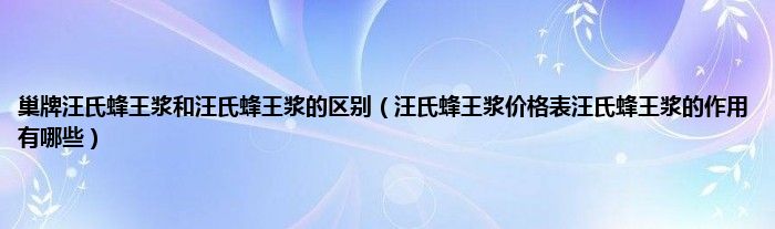 大家好,小科来为大家解答以上问题。巢牌汪氏蜂王浆和汪氏蜂王浆的区别,汪氏蜂王浆价格表汪氏蜂王浆的作用有哪些很多人还不知道,现在让我们一起来看看吧!