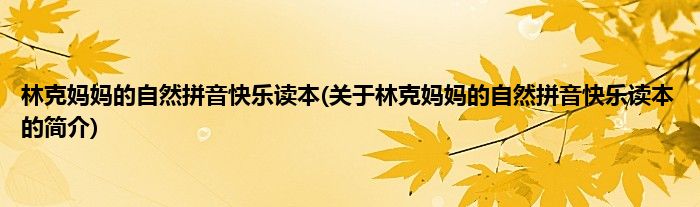 大家好,林克妈妈的自然拼音快乐读本,关于林克妈妈的自然拼音快乐读本的简介很多人还不知道,现在让我们一起来看看吧!