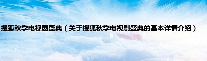 搜狐秋季电视剧盛典(关于搜狐秋季电视剧盛典的基本详情介绍)