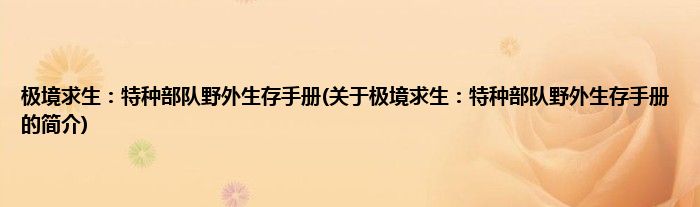 本文关于极境求生:特种部队野外生存手册的简介就讲解完毕,希望对大家有所帮助。
