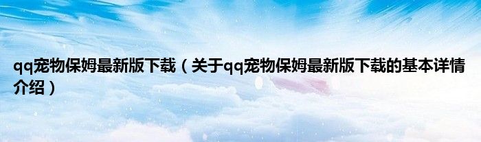 qq宠物保姆最新版下载(关于qq宠物保姆最新版下载的基本详情介绍)